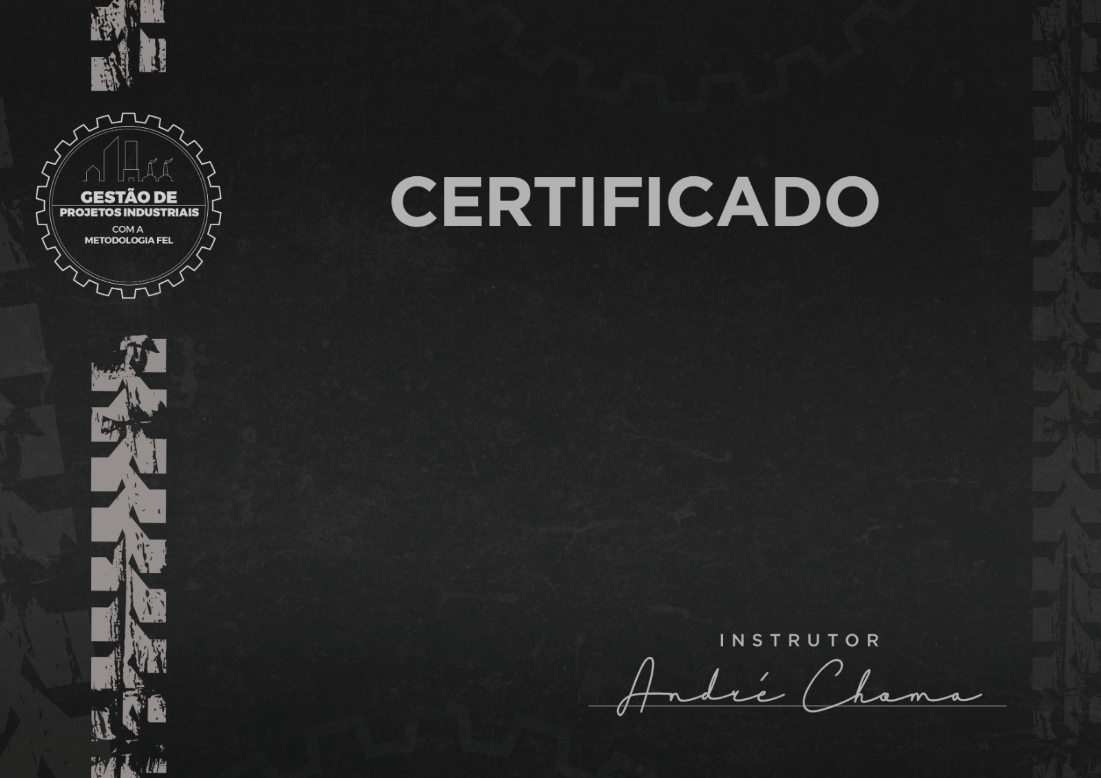 Certificamos que Carlos Henrique Joao concluiu o Curso de Gestão de Projetos Industriais com a Metodologia FEL (Front-End Loading), em 24/04/2025, com duração de 24:00 horas.